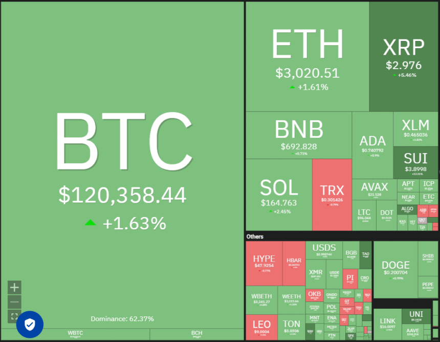 Bitcoin (BTC) started the new week on a strong note, rising above $123,000, but higher levels are witnessing some profit booking. A positive sign is that the bulls are trying to maintain the price above $120,000.