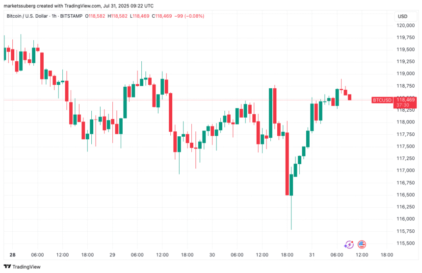 BTC price aims for $119,000, gaining nearly 3% versus FOMC meeting lows.