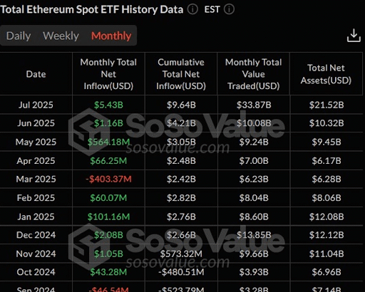 In a powerful show of investor confidence, spot Ethereum exchange-traded funds (ETFs) broke all records in July with $5.43 billion in net inflows. It marks the highest monthly inflow since…