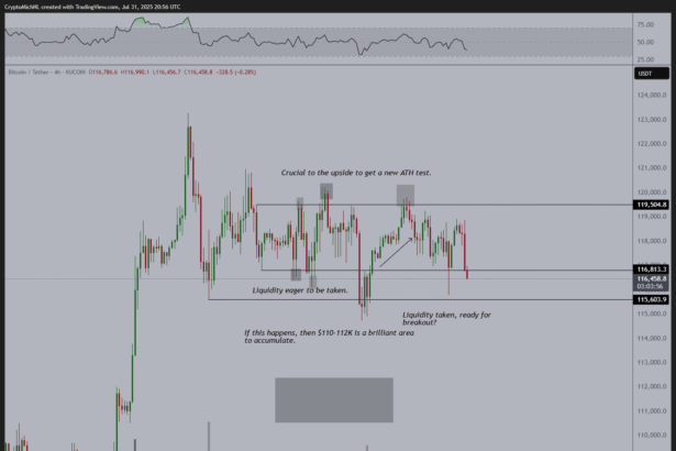 Key takeaways:Bitcoin hinges on $115,000 support, risking a drop toward $104,000.Weekly RSI divergence points to a deeper correction.Rising NUPL signals increased profit-taking, hinting $123,000 was the local top.Bitcoin (BTC) is…