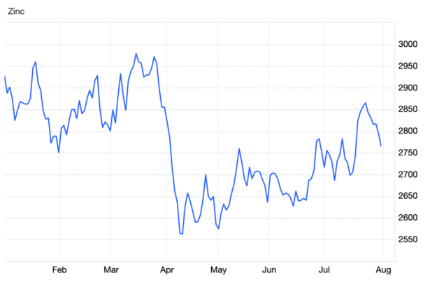 Zinc prices were in decline for much of the first half of 2025 as primary supply increased and demand from the construction sector slumped.Primarily used to make galvanized steel destined…