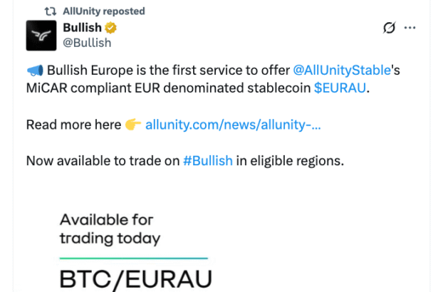 EURAU, a new euro stablecoin venture backed by Deutsche Bank’s DWS, Flow Traders and Mike Novogratz’s Galaxy, has debuted on the Ethereum blockchain.AllUnity — a company backed and formed by…