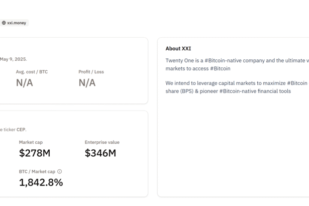 Twenty One Capital is reportedly exploring a strategy that would allow it to issue US dollar loans backed by Bitcoin collateral, Bloomberg reported Wednesday, citing a person familiar with the…