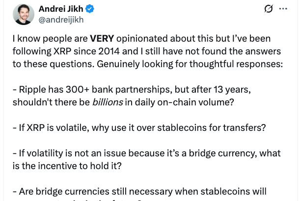 Ripple, the company behind major cryptocurrency XRP, is facing community backlash after online entrepreneur Andrei Jikh raised questions over the company’s projects and transparency.Jikh took to X on Wednesday to…