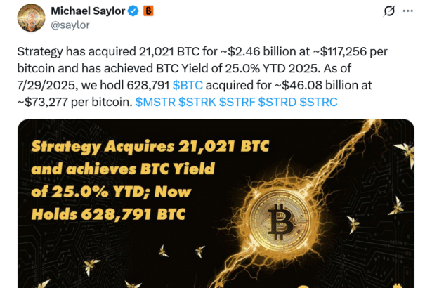 Michael Saylor’s Strategy says it bought 21,021 Bitcoin after raising $2.5 billion from its fourth preferred stock — STRC — making it the largest US initial public offering in 2025…