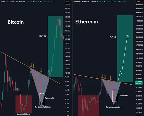 The Ethereum price may be setting the stage for a historic breakout, as a new technical analysis suggests that ETH is closely mirroring the Bitcoin (BTC) price action from 2020…