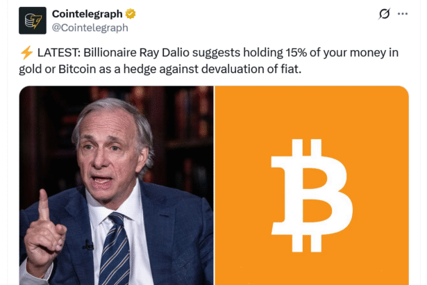 American billionaire and hedge fund manager Ray Dalio has recommended a 15% portfolio allocation into Bitcoin or gold to optimize for the “best return-to-risk ratio” in light of America’s crippling…
