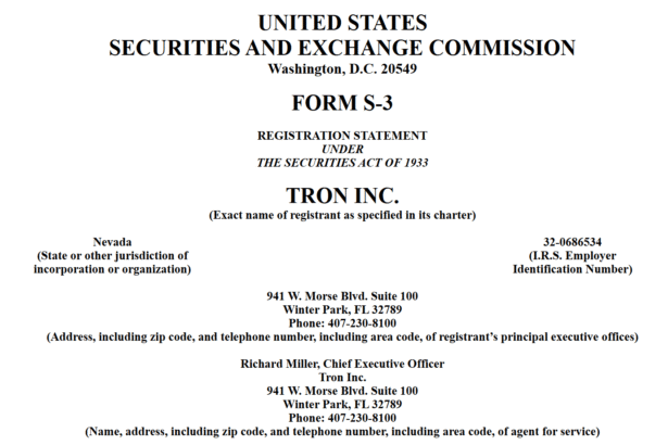 Tron Inc., the Nasdaq-listed company that previously traded as a penny stock under SRM Entertainment, is seeking approval from US regulators to raise $1 billion to expand its Tron (TRX)…