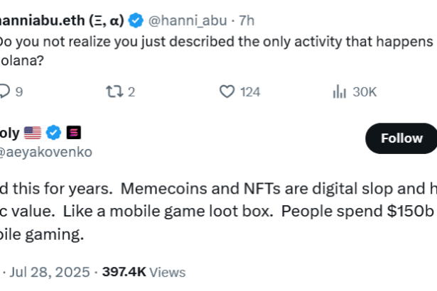Solana co-founder Anatoly Yakovenko has sparked controversy after referring to memecoins and non-fungible tokens as “digital slop,” despite Solana’s substantial memecoin-driven revenue.“I’ve said this for years. Memecoins and NFTs are…
