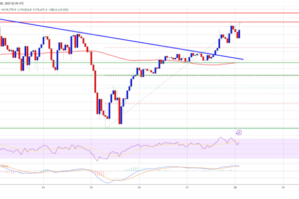 Bitcoin price is eyeing a fresh increase above the $118,500 resistance. BTC must clear the $120,500 resistance zone to gain bullish momentum in the near term. Bitcoin started a fresh…
