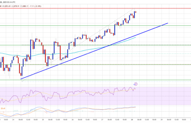 Ethereum price started a fresh increase above the $3,800 zone. ETH is now showing positive signs and might soon aim for a move toward $4,000. Ethereum started a fresh increase…