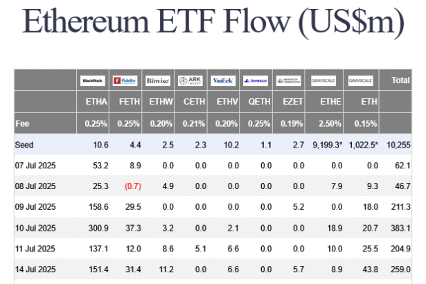 US investors poured more into spot Ether exchange-traded funds than their Bitcoin counterparts over the last six trading days, as institutional interest in Ethereum surged this week. Spot Ether ETFs recorded…