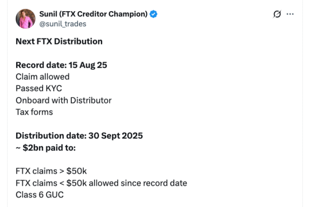 The FTX bankruptcy estate has scheduled the next distribution to creditors, using funds no longer classified as disputed claims.The FTX Recovery Trust and debtor FTX Trading on Wednesday announced that…