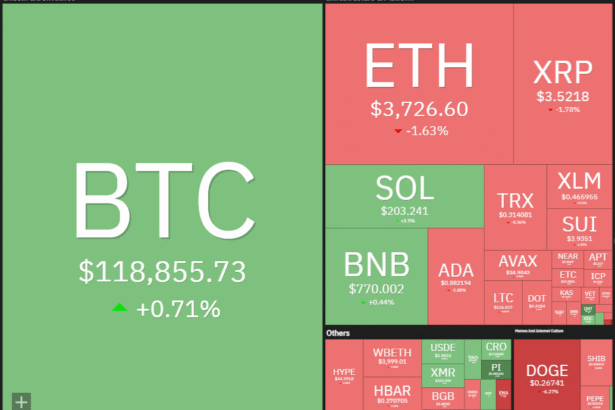 Key points:Bitcoin is facing selling near $120,000, but the bears have failed to pull the price below $115,000, indicating that buyers remain in command.Select major altcoins continue to charge higher,…