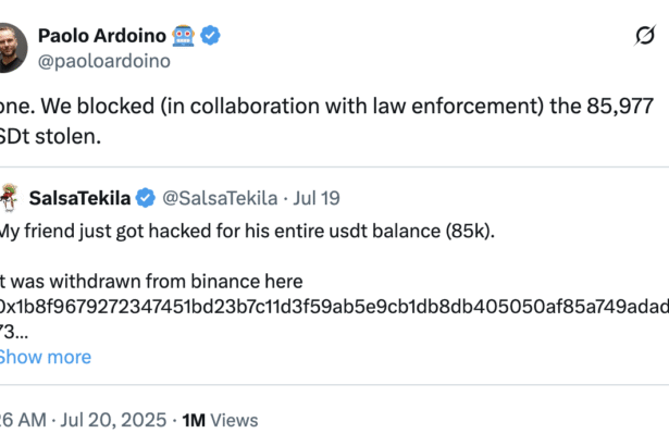 Tether, issuer of the world’s largest stablecoin, said on Sunday it had frozen $85,877 in USDt (USDT) tied to stolen funds, acting in “collaboration with law enforcement.” The move has…