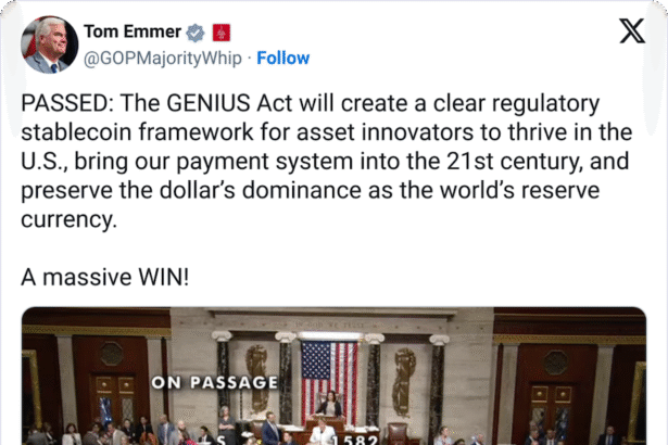 President Donald Trump is a signature away from enacting a bill to regulate stablecoins that will dictate how issuers of the tokens must be regulated to serve the US market.The…