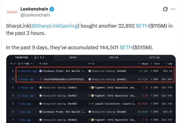 Joseph Lubin-backed SharpLink Gaming has drastically increased the equity it intends to sell to scoop up more Ether — and has added $515 million of Ether to its treasury in…