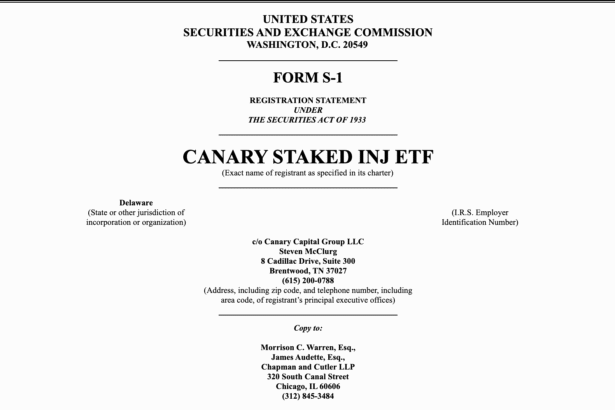 Investment company Canary Capital filed an S-1 application for a staked INJ (INJ) exchange-traded fund (ETF) with the United States Securities and Exchange Commission (SEC) on Thursday.INJ is the governance,…