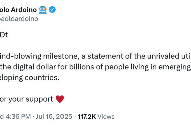 The market cap of Tether’s USDt, the world’s largest stablecoin, has surpassed $160 billion for the first time, a “new mind-blowing milestone,” according to Tether CEO Paolo Ardoino.In a Thursday…