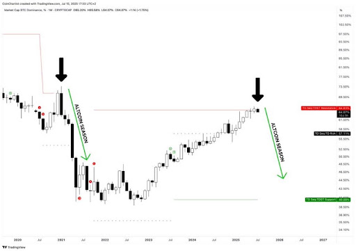 Bitcoin Dominance (BTC.D) has hit a critical turning point after getting sharply rejected from a TSDT resistance level that previously marked the start of a massive altcoin season. As the…