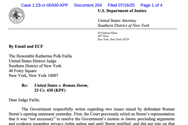 US attorneys prosecuting Tornado Cash co-founder and developer Roman Storm are asking a judge to block certain testimony after opening statements on Tuesday suggested that defense lawyers plan to question…