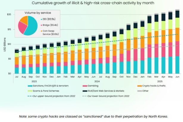 At least $21.8 billion in illicit or high-risk crypto has flowed through crosschain swaps, up from $7 billion in 2023, according to estimates by UK-based blockchain analytics firm Elliptic. Elliptic…