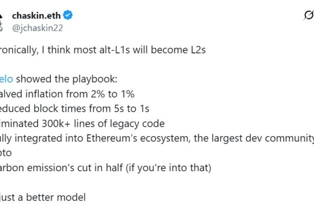 As layer-1 networks face pressure to maintain relevance, Ethereum proponents suggest a new path forward: becoming a layer-2 on Ethereum. On Monday, Jason Chaskin, who leads app relations and research at…
