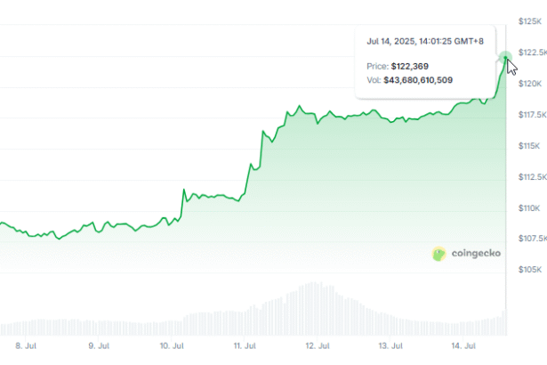 Bitcoin rose above the $122,000 mark on Monday. According to data from CoinGecko, prices briefly topped that level before pulling back slightly. The jump comes in the face of strong…