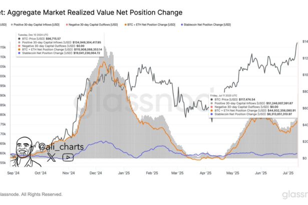 Bitcoin has set a new all-time high (ATH) around $123,000, but cryptocurrency market inflows are still far from the peak observed back in 2024. Crypto Capital Inflows Are Currently Sitting…