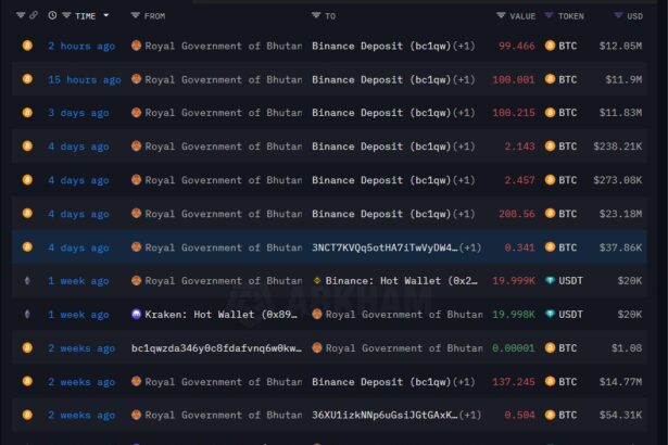 The Royal Government of Bhutan moved 99.47 Bitcoin (BTC) worth $12.05 million at the time to crypto exchange Binance through its investment arm, Druk Holding.Blockchain analytics platform Onchain Lens flagged…
