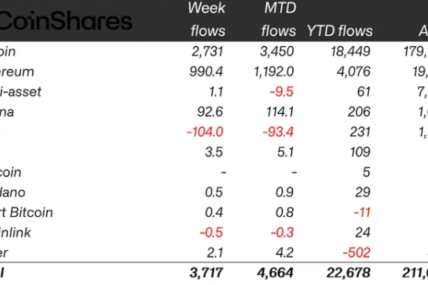 Cryptocurrency investment products experienced strong inflows during the last trading week, amid Bitcoin surging to historic highs of $118,000.Global crypto exchange-traded products (ETPs) recorded $3.7 billion of inflows for the…
