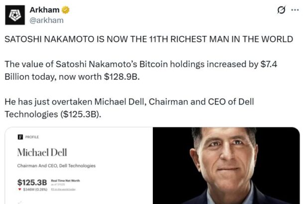 Bitcoin’s creator, Satoshi Nakamoto, became the 11th richest person in the world after Bitcoin tapped $120,000 on Sunday. Nakamoto is believed to hold 1.096 million Bitcoin (BTC) across thousands of wallets,…