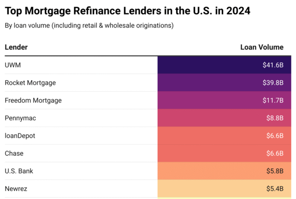 It’s time to take a look at the top mortgage refinance companies in the country, based on total loan volume.As you may have guessed, United Wholesale Mortgage (UWM) led the…
