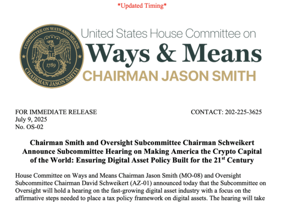 Lawmakers in the US House of Representatives are scheduled to hold a hearing on a crypto tax policy framework as part of Republicans’ push to consider bills on central bank…