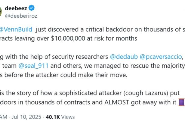 Crypto security researchers uncovered and neutralized a critical threat affecting thousands of smart contracts, potentially preventing more than $10 million in crypto from being stolen. On Thursday, pseudonymous Venn Network researcher…