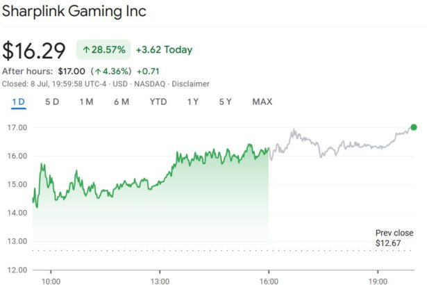 Shares in SharpLink Gaming closed Tuesday trading up over 28% after the sports betting company said it made a series of Ether buys to bring its holdings to 205,634 Ether,…