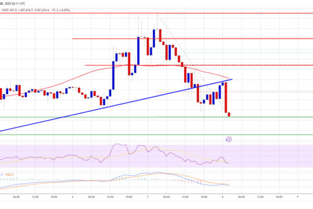 Bitcoin price started a fresh decline from the $110,000 zone. BTC is now declining and might trade below the $107,500 support zone. Bitcoin started a fresh decline from the $110,000…