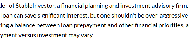 I was recently quoted in Moneycontrol in an article titled “Home loan dilemma: Should you prepay or invest after repo rate cut?” Here is the link to the online version…
