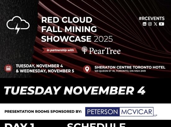 Red Cloud is excited to announce the agenda and keynote lineup for its annual Fall Mining Showcase, taking place November 4 & 5, 2025 at the Sheraton Centre Toronto Hotel.…