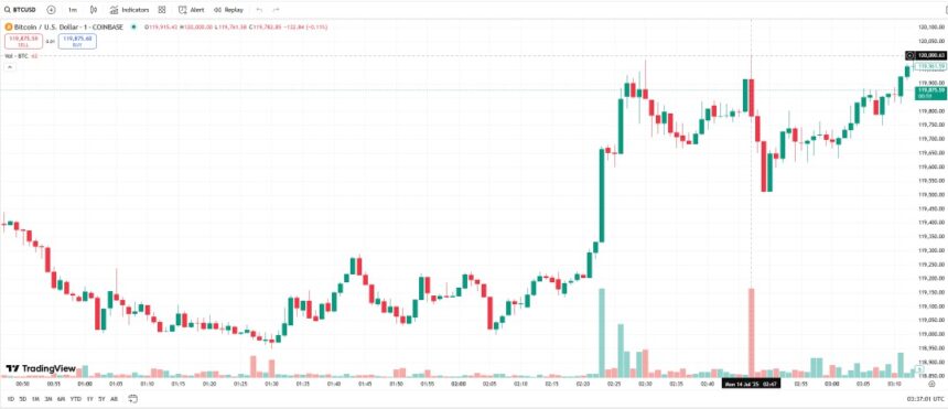 Bitcoin (BTC) extended its July rally by clearing a new all-time high of $120,000 on Coinbase on July 14 at 2:47 am UTC.