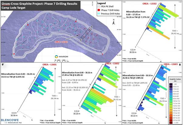 Blencowe Resources Plc (LSE: BRES), the natural resources company advancing the Orom-Cross graphite project in Uganda, is pleased to announce further assay results from its Stage 7 drilling programme at its flagship Orom-Cross graphite project in northern Uganda.