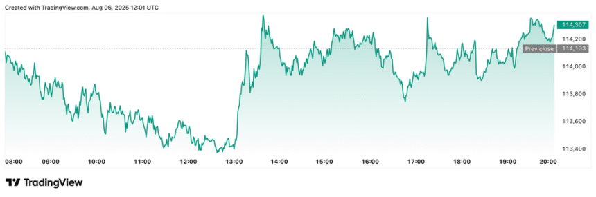 Bitcoin price performance, August 6, 2025.