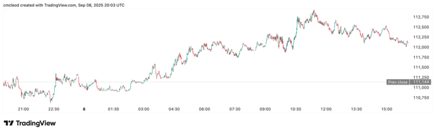 Bitcoin price performance, September 8, 2025.