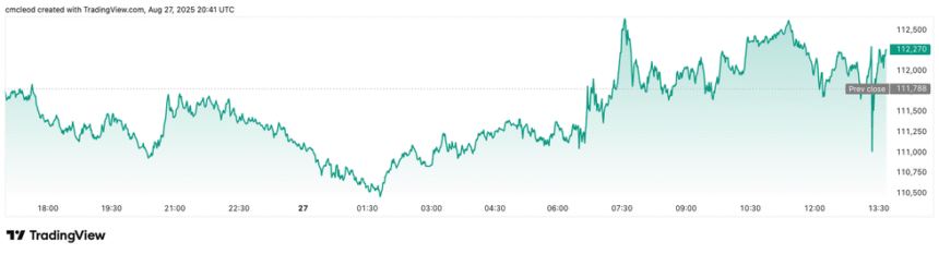Bitcoin (BTC) was priced at US$112,039, a 1 percent increase in 24 hours. Its lowest valuation of the day was US$111,198 and its highest price on Wednesday was US$112,555.