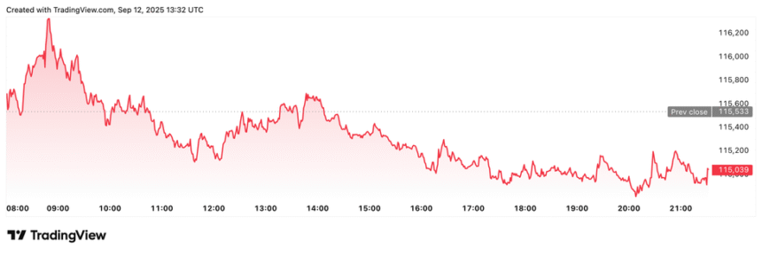 Bitcoin price performance, September 12, 2025.