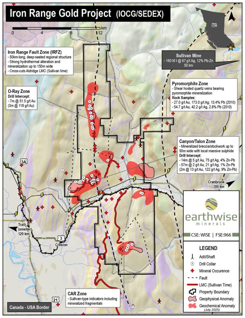 Earthwise Minerals Corp. (CSE:WISE)(FSE:966) (“Earthwise” or the “Company“) has completed the first part of its two-phase 2025 field program at the Iron Range Gold Project (“the Project”) in southeastern British Columbia. The program, led by TerraLogic Exploration Inc., included the collection of 538 soil samples over 13.5 line-km and 15 rock samples, along with structural mapping and prospecting across key target zones. Analytical results are pending and will be released once received, compiled, and interpreted.