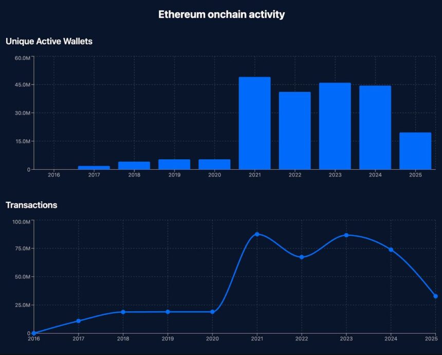 At the moment, 2025 Ethereum DApp activity appears on track to match or even surpass 2024. Source: DappRadar