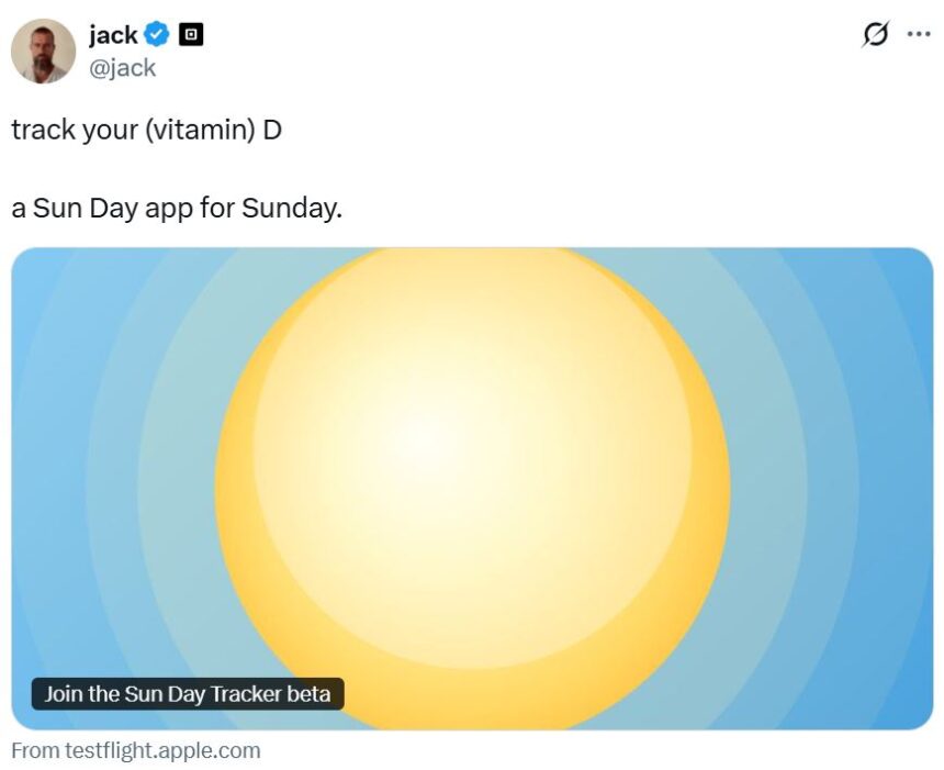 Dorsey shared the “Sun Day” app to his followers on X on Sunday, which, according to its white paper on GitHub, “calculates vitamin D synthesis from UV exposure using a multifactor model based on scientific research.”