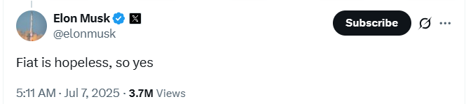 Still, if Musk aims to take on the structure of the American political system and the Grand Old Party, he will need more than posts about Bitcoin to carry the America Party to victory.
