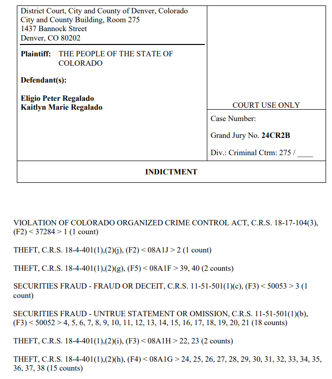 Online pastor Eli Regalado and his wife, Kaitlyn, were indicted on 40 counts stemming from what Denver District Attorney John Walsh described as a “multi-million-dollar cryptocurrency scam.”